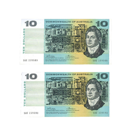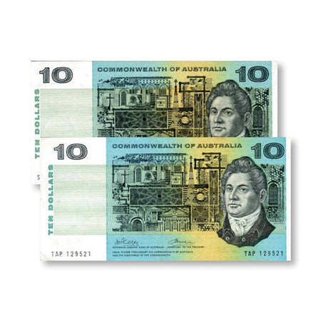 1974 R305 $10 Phillips/Wheeler Australia Banner Banknote Consecutive Pair Uncirculated