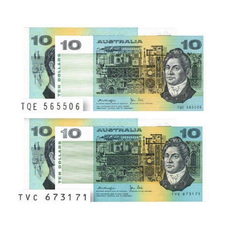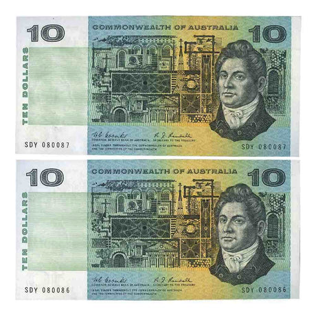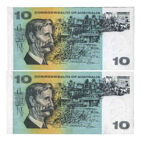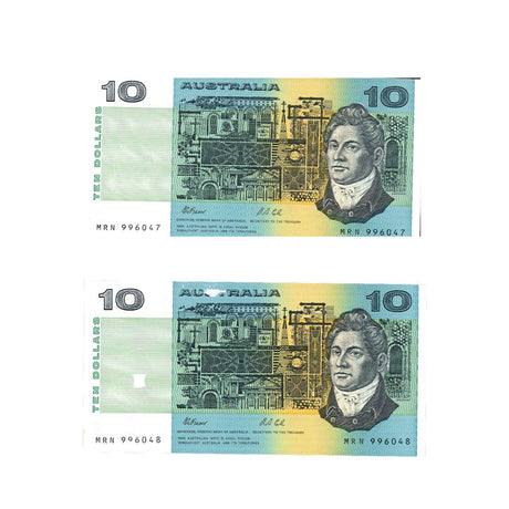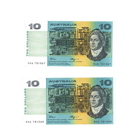1990 R312 $10 Fraser/Higgins Banknote Consecutive Pair Uncirculated