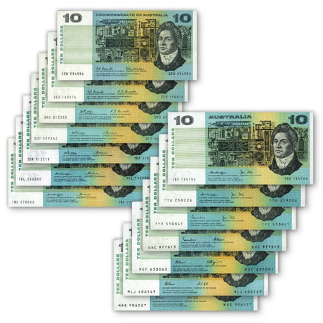 Australia 1985-91 Last Three Paper $10 Uncirculated Banknote Set