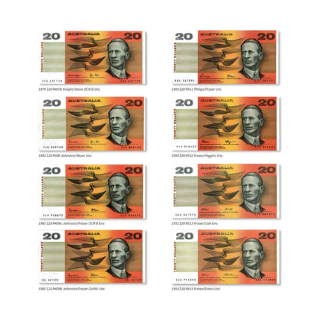 Australia 1989-93 Last Three Paper $20 Uncirculated Banknote Set