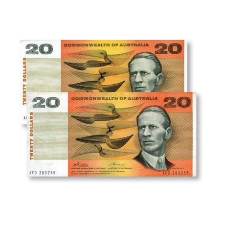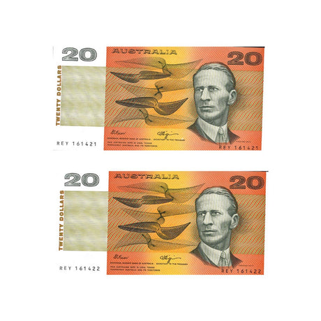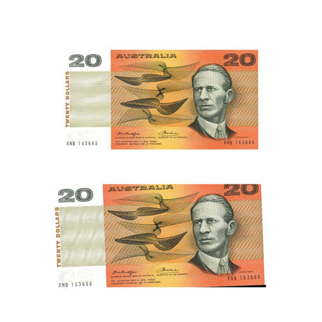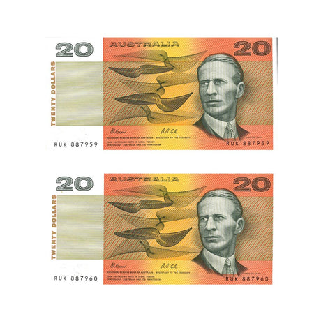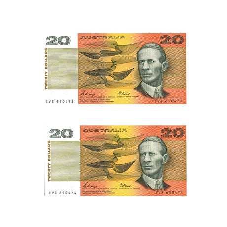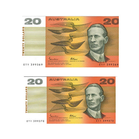 1990 R412 $20 Fraser/Higgins Banknote Consecutive Pair Uncirculated