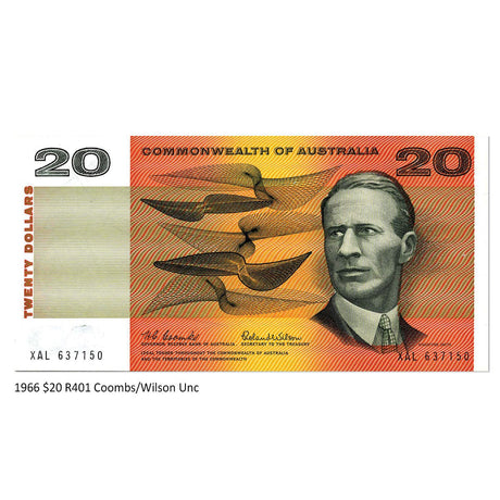 Australia 1966 $20 R401F Coombs/Wilson XAA First Prefix Uncirculated Banknote