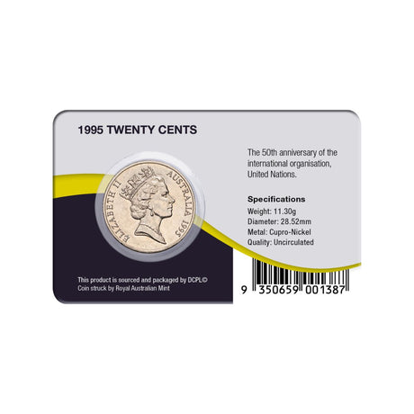 Australia UN 50th Anniversary 1995 20c Cupro-Nickel Uncirculated Coin Pack
