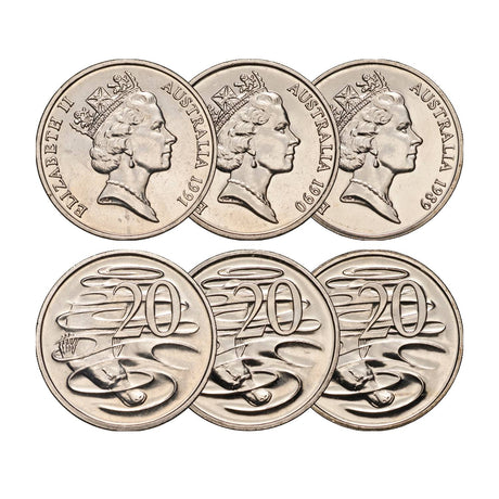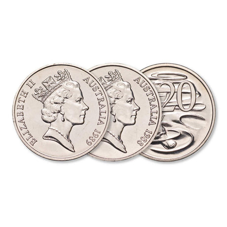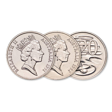 Australia 1989, 1990 & 1991 20c Brilliant Uncirculated 3-Coin Set