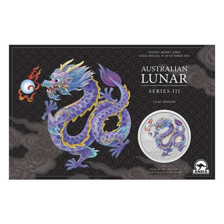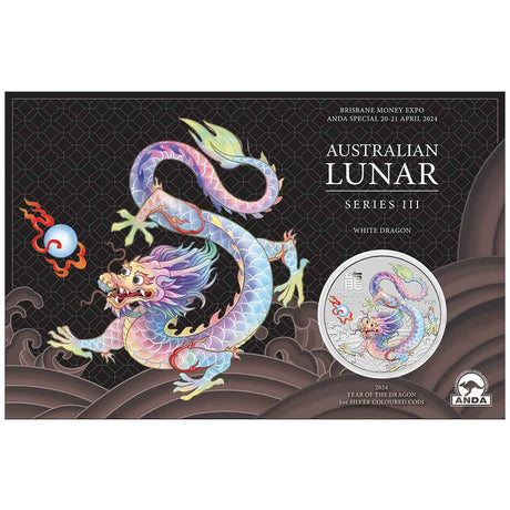 ANDA Brisbane Money Expo 2024 $1 Year of the Dragon Colour 1oz Silver Brilliant Uncirculated Coin
