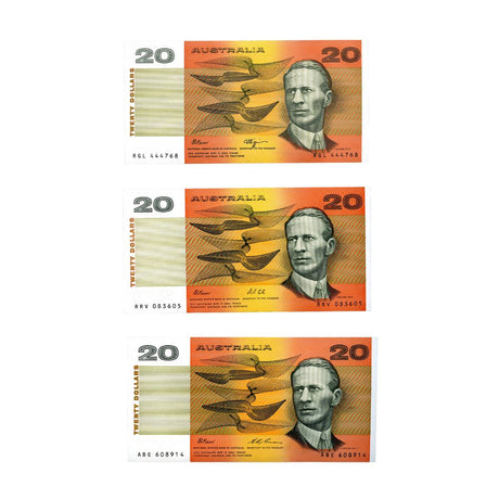 Australia 1985-91 Last Three Paper $10 Uncirculated Banknote Set
