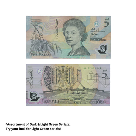 Australia 1992 $5 R214i Fraser/Cole Light Green Serials Uncirculated Banknote