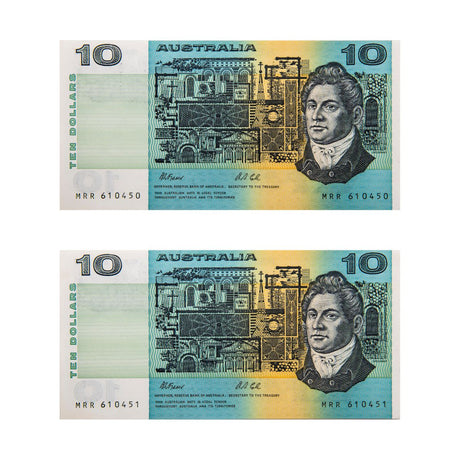 1974 R305 $10 Phillips/Wheeler Australia Banner Banknote Consecutive Pair Uncirculated
