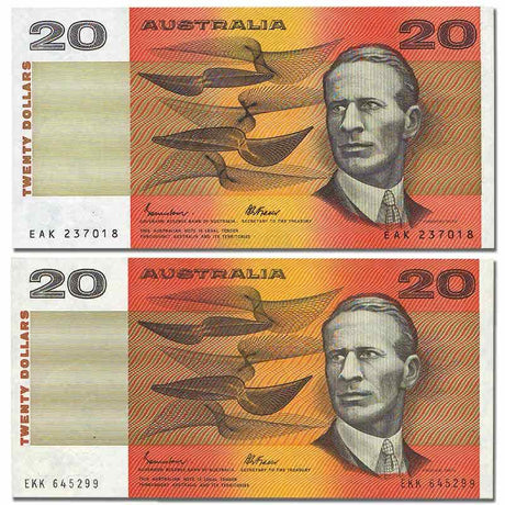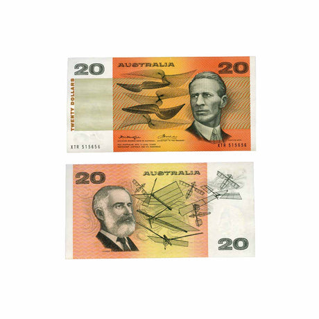 1976 $20 R406a & R406b Knight/Wheeler with centre & side thread pair Uncirculated (2 notes)