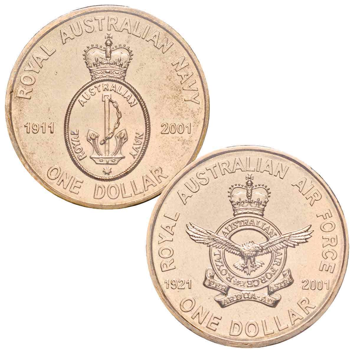 Australia Navy 90th & Air Force 80th Anniversary 2001 $1 Aluminium-Bronze Uncirculated Coin Pair