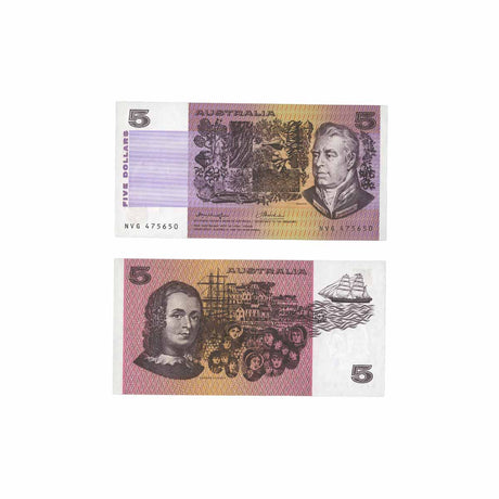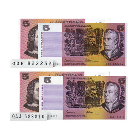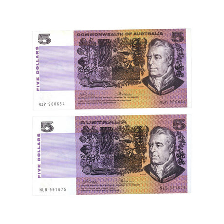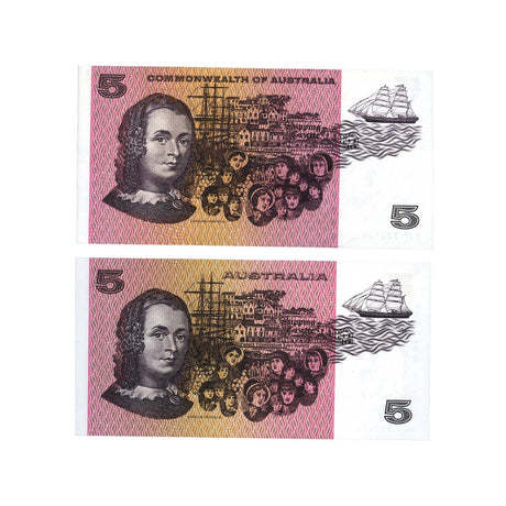1974 R205 $5 Phillips/Wheeler Australia Banner Banknote Consecutive Pair Uncirculated