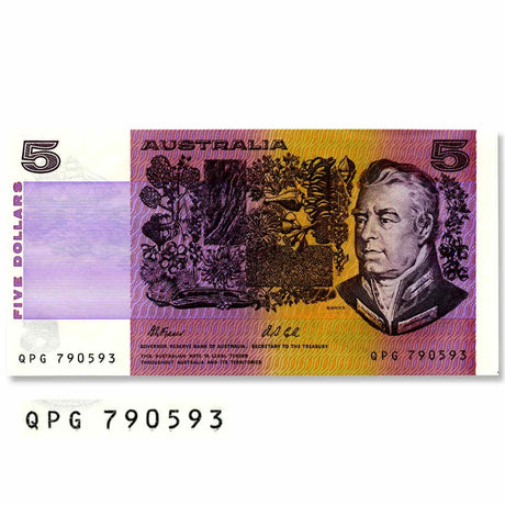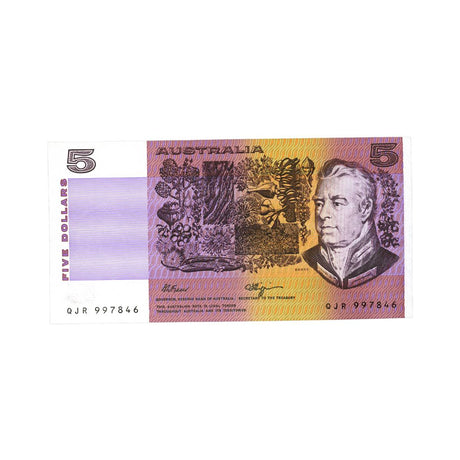 Australia 1990 $5 R212L Fraser/Higgins QJR Last Prefix Uncirculated Banknote