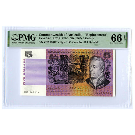 Australia 1967 $5 R202SF Coombs/Randall Star Note First Prefix PMG66 (Gem Uncirculated)