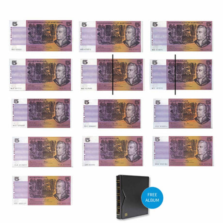 Australia $5 Banknote 1967-91 Paper Uncirculated 13-Note Collection