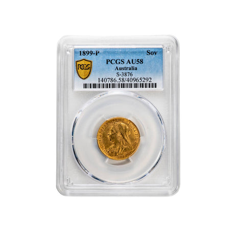 Queen Victoria 1899P Veiled Head Gold Sovereign PCGS AU58