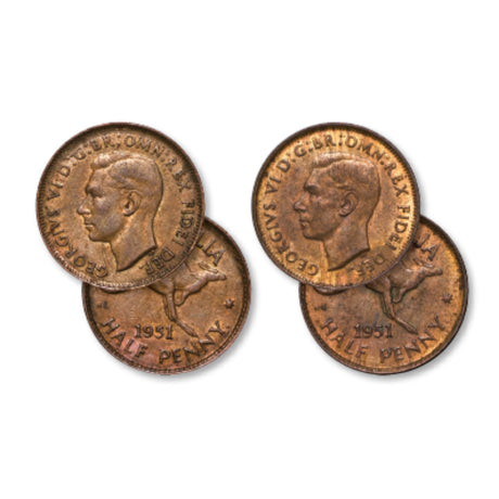 Australia George VI 1951Y Halfpenny with 1952 Obverse & Standard Type Pair Extremely Fine