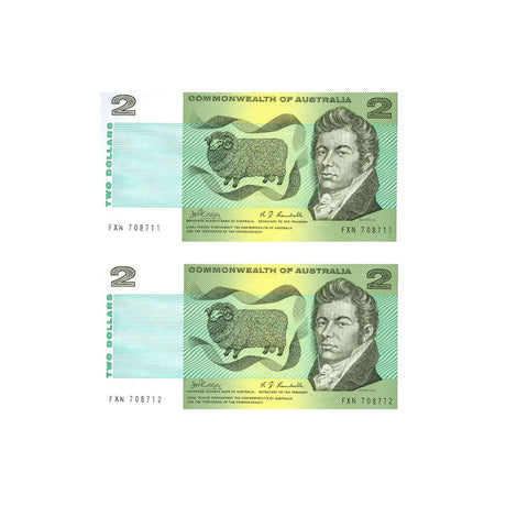 1990 R312 $10 Fraser/Higgins Banknote Consecutive Pair Uncirculated