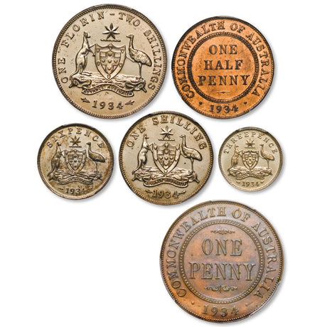 Australia George V 1934 6-Coin Proof Set PCGS PR62-66