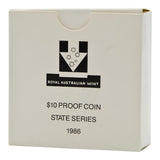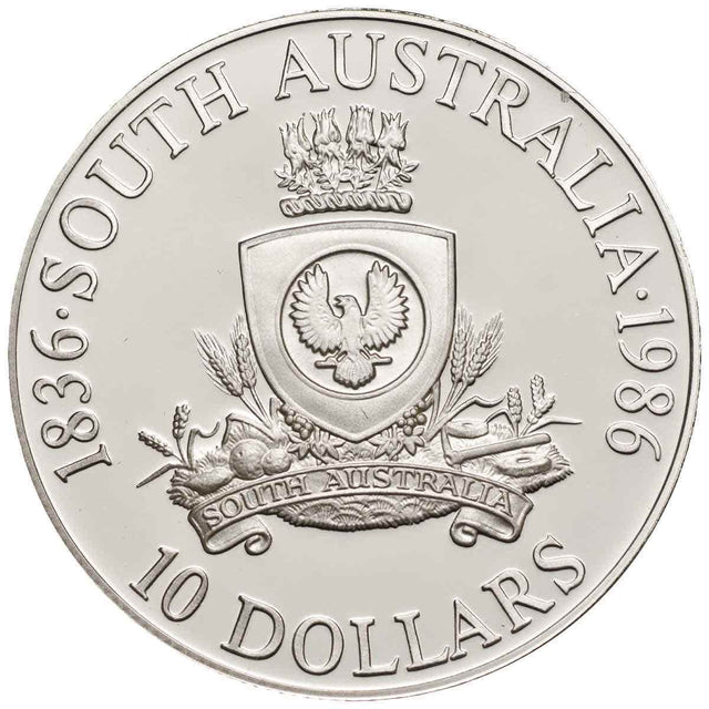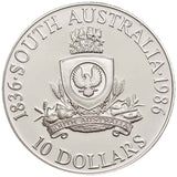 Commemorate the 150th anniversary of South Australia with this 1986 $10 Silver Proof Coin. Crafted from sterling silver, this coin is a valuable tribute to the history and culture of this region. A must-have for any coin collector or history enthusiast.