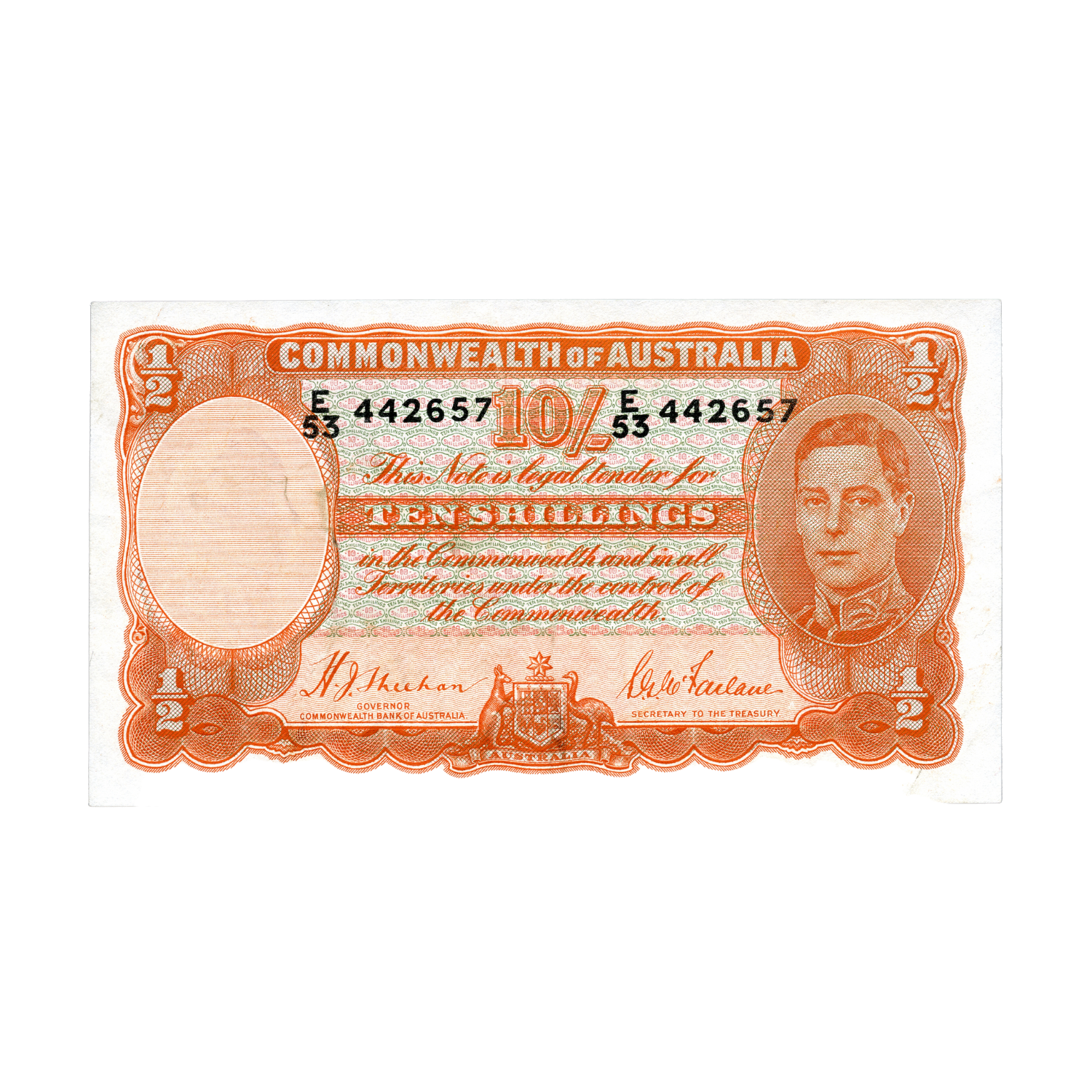 Australia 1939 10/- R12 Sheehan/McFarlane Fine-Very Fine Banknote