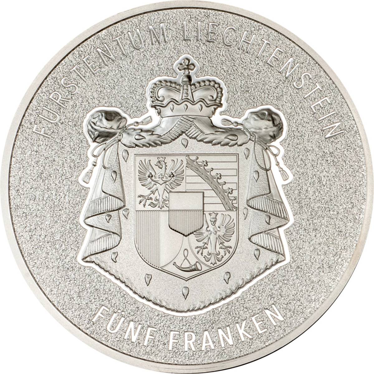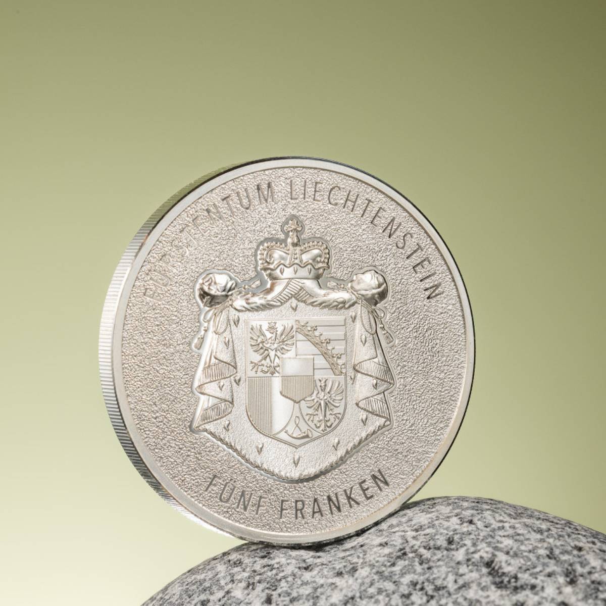 This magnificent coin celebrates a significant milestone: 100 years of the Swiss Franc as the national currency of the Principality of Liechtenstein.