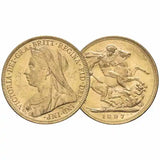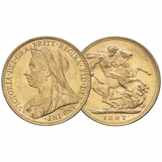 Includes seven 22-carat gold sovereigns – dates, mints & types of our choice.