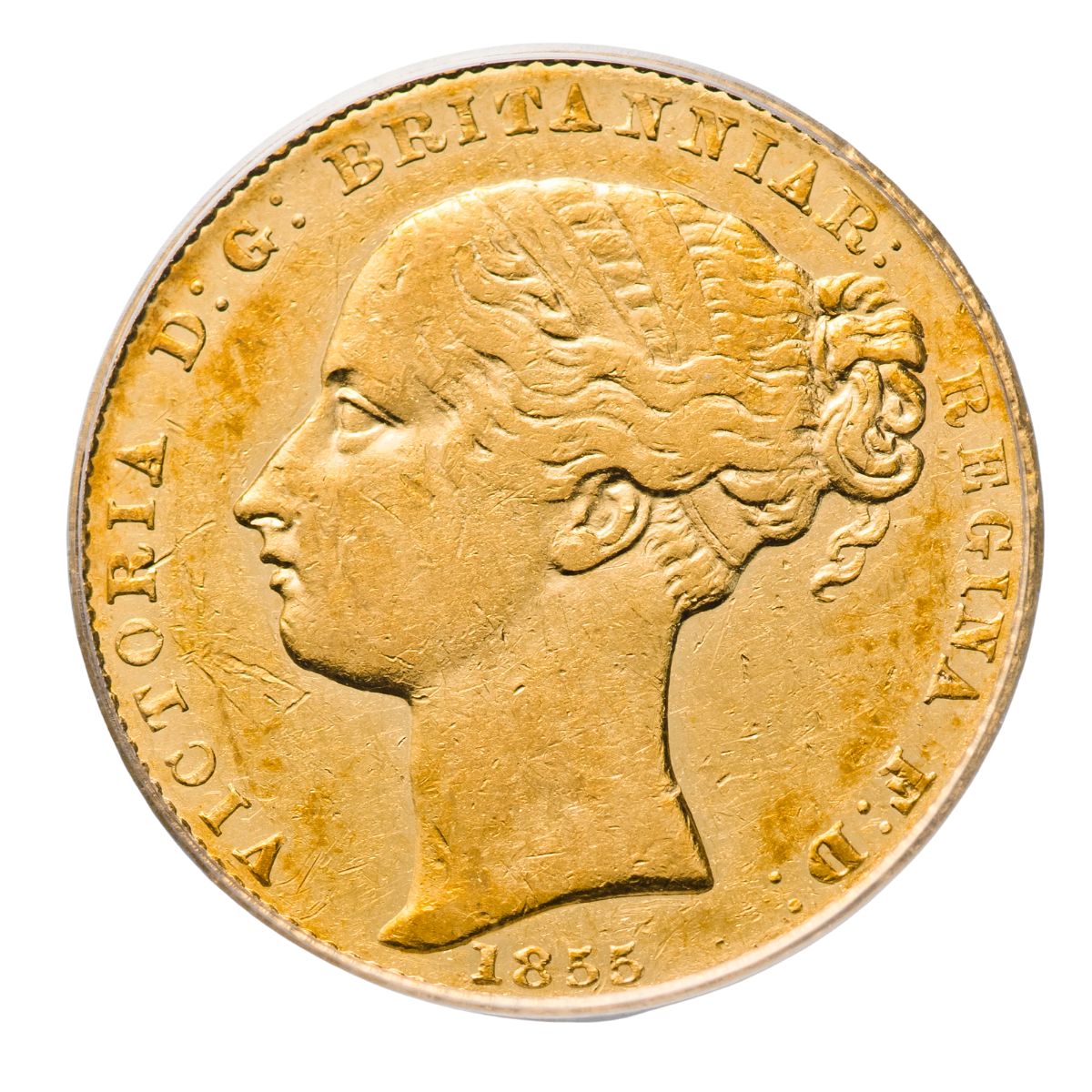 The very first coin of the Australian 1855-1931 Sovereign Series!