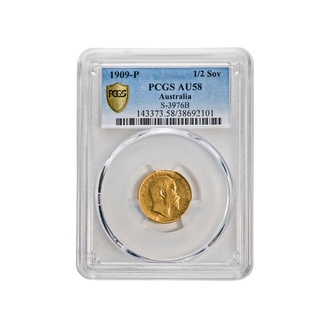 1909 Perth Edward VII Gold Half Sovereign PCGS AU58