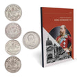 The four coins are set in an illustrated, informative pack.