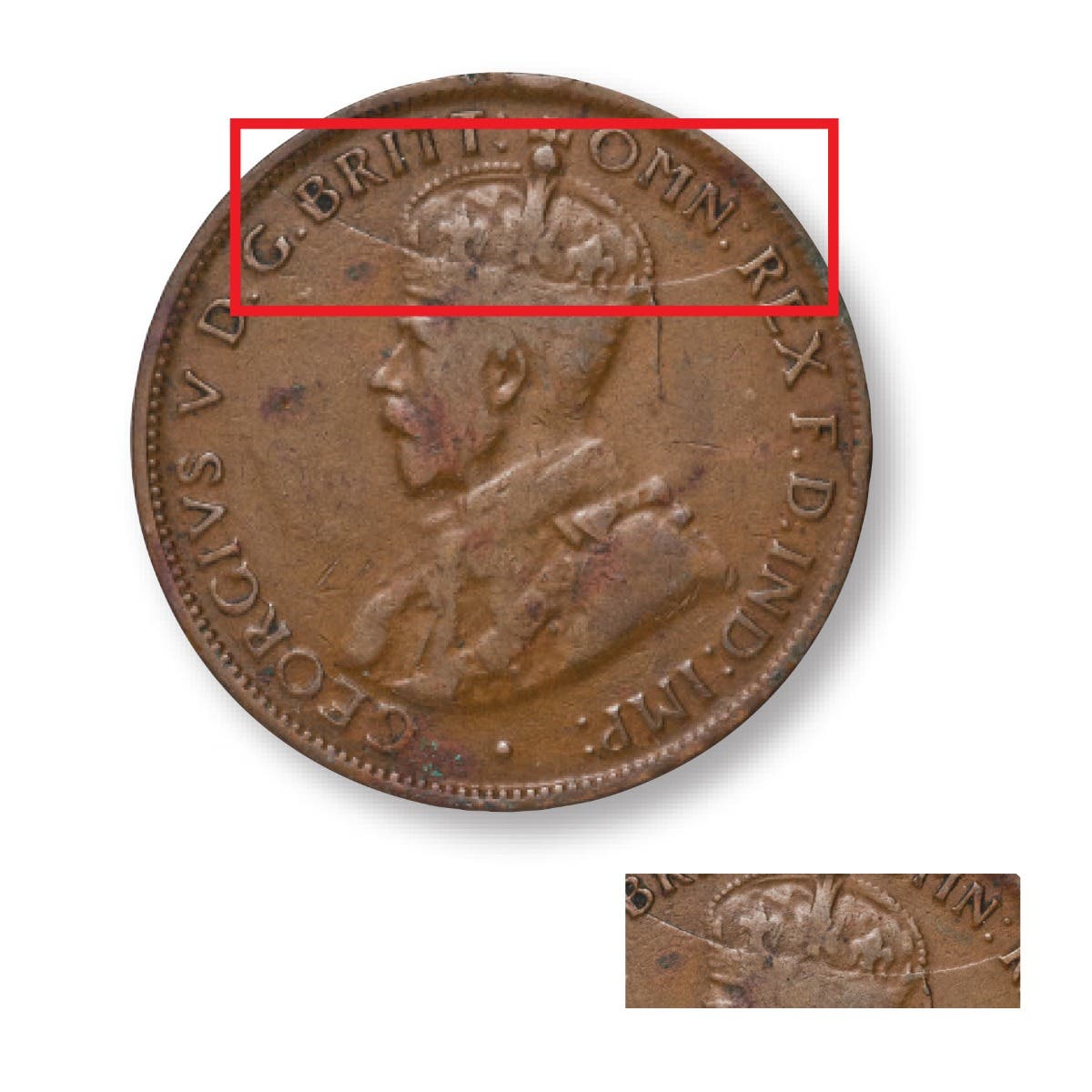 1926 Halfpenny "Half Moon" Die Crack W/ Normal Pair VG