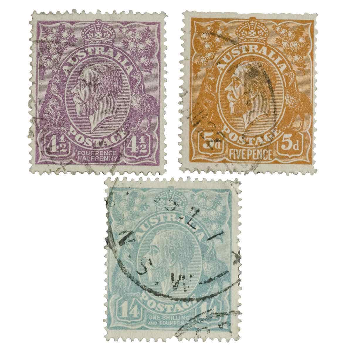 1927-1931 4½d Violet, 5d Brown & 1/4 Blue 3-Stamp Set Fine Used
