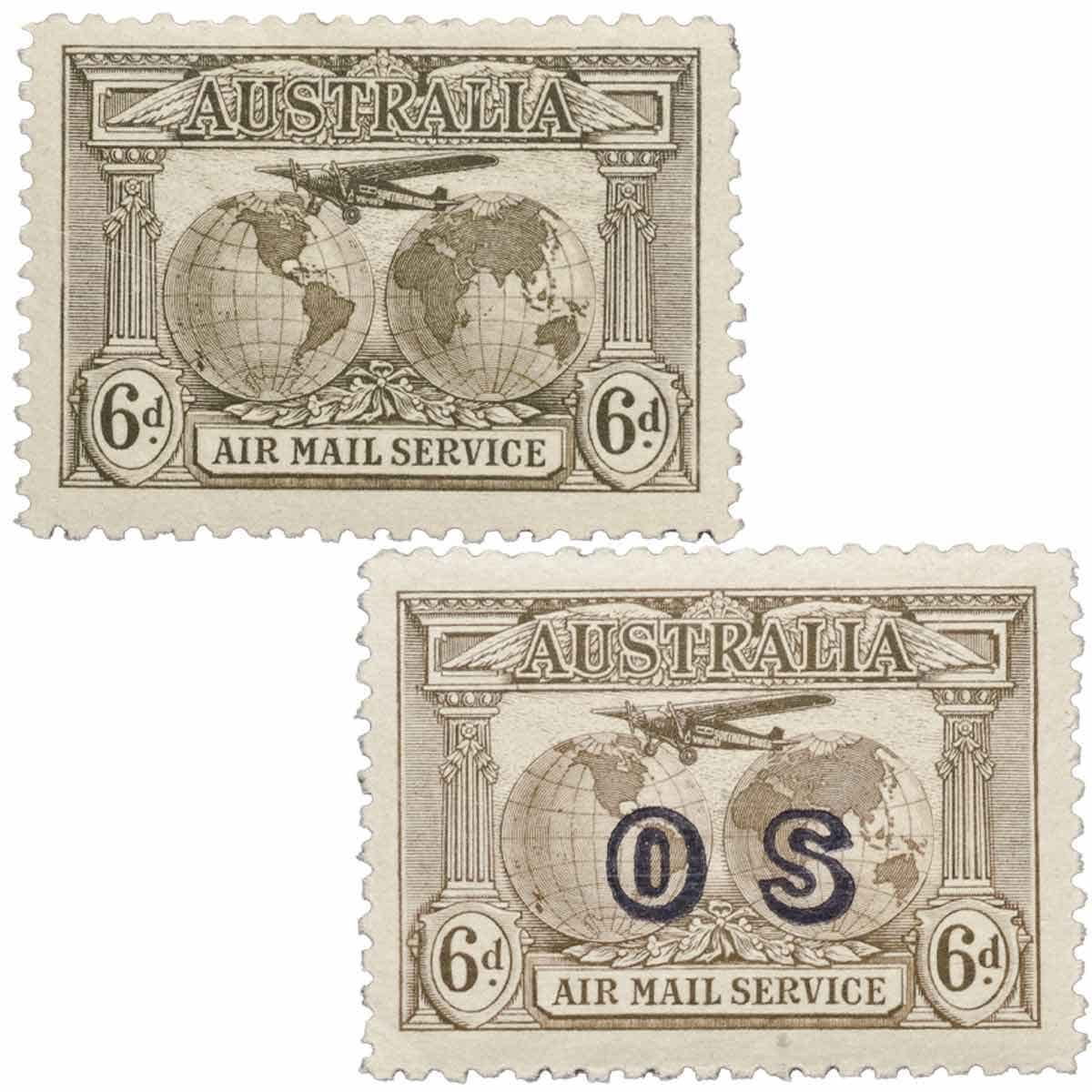 1931 6d Airmail & 6d OS Overprint Pair Mint Unhinged