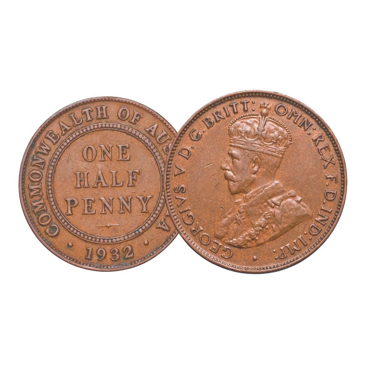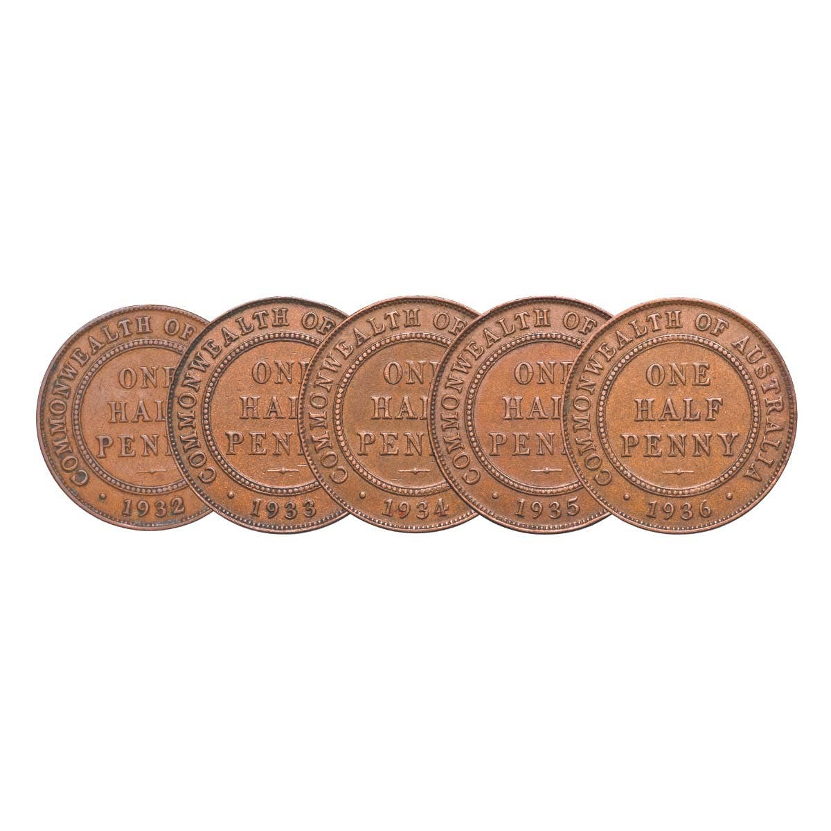 Australia George V 1932-36 Bronze Halfpenny about Extremely Fine-Extremely Fine 5-Coin Set