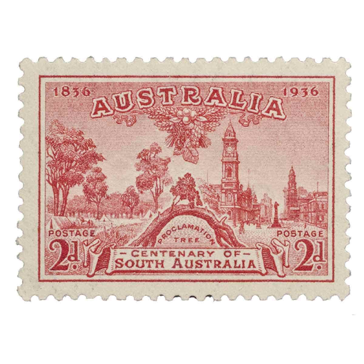 Each stamp depicts the Proclamation Tree, also known as the Old Gum Tree.