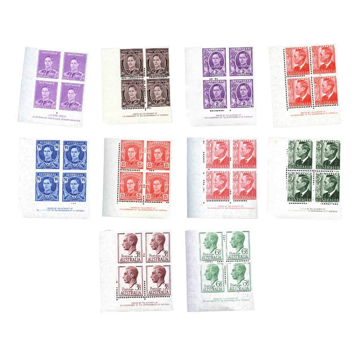 1938-1951 10 different King George VI Imprint blocks of 4 MUH