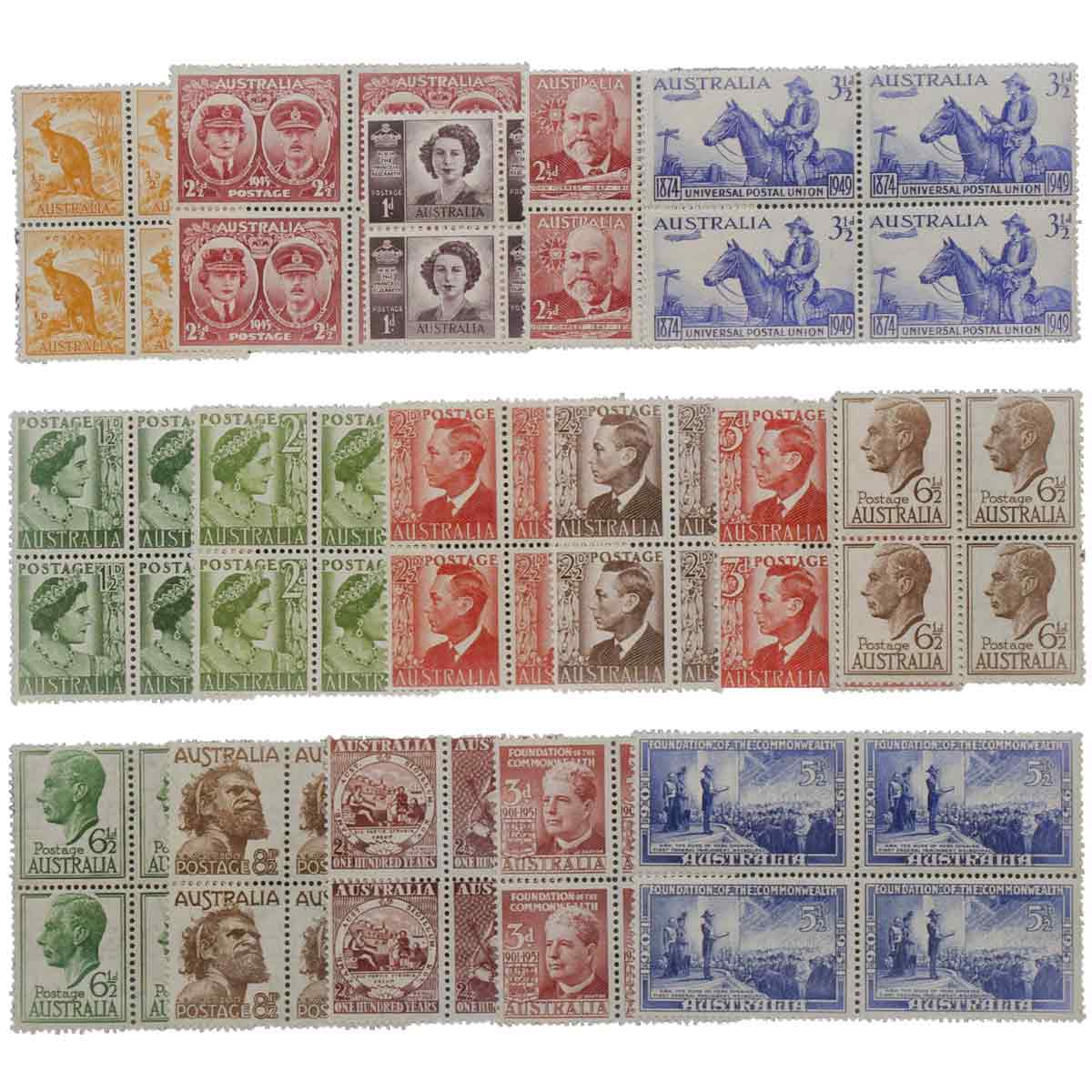 1942-52 Set of 16 Different Blocks of Four (64 stamps) Mint Unhinged