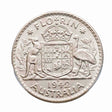 The first of only three Australian Florin dates struck at the San Francisco Mint, the 1942S Florin is distinguished by an S mintmark immediately above the date on the reverse. Upon the obverse is found the portrait of King George VI, designed by Humphrey Paget.