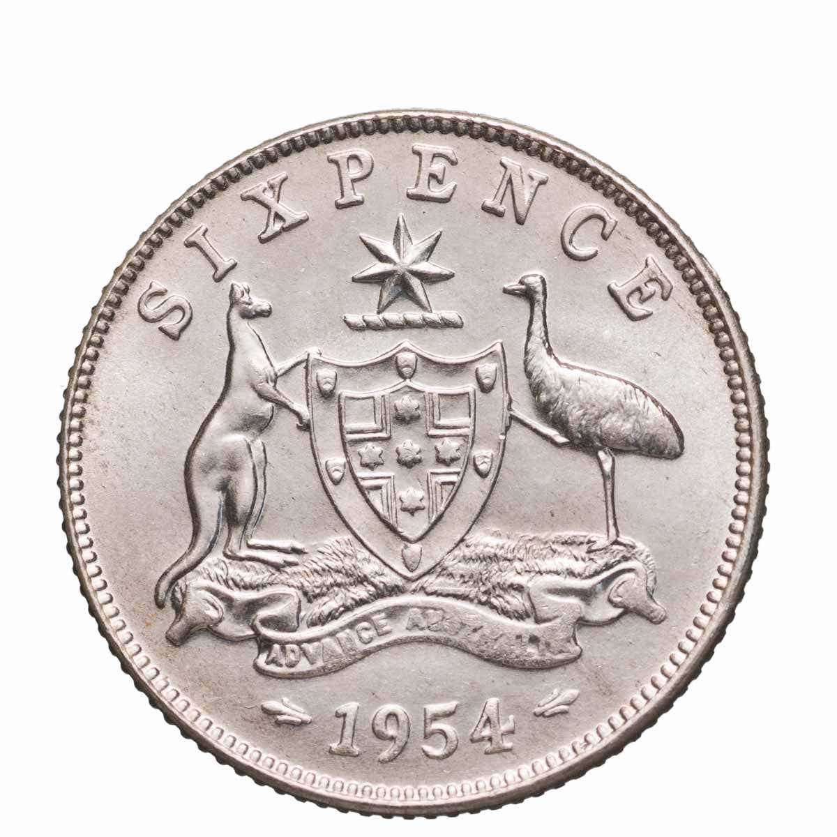 Australia Elizabeth II 1954 Sixpence Choice Uncirculated Coin
