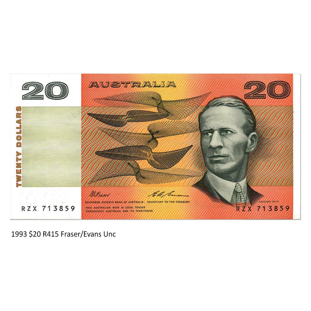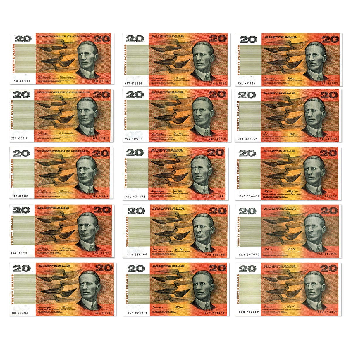 Australia $20 Banknote 1966-93 Uncirculated 15-Note Collection (no 1967 $20 Coombs/Randall)