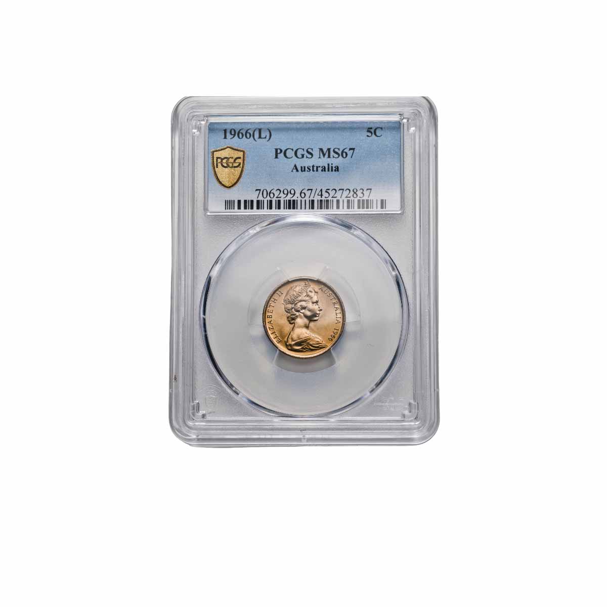 Australia 1966 5c Canberra & London Coin Pair PCGS MS67 (Gem Uncirculated)