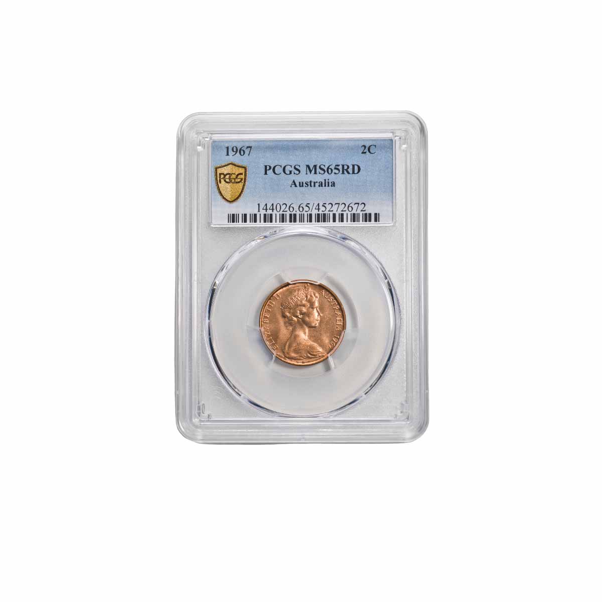 Australia 1967 2c PCGS MS65RD (Gem Uncirculated Red)
