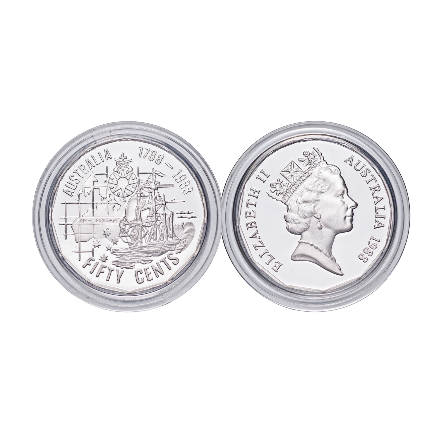 Issued to coincide with the celebrations for the 200th anniversary of European Settlement, this sought after silver set comprised four individually brilliant Australian legal tender coins. Headlined by Australia's first $5 coin, the 1988 Masterpieces in Silver also featured the First Fleet 50c, the Aboriginal Elder $2 and the Bicentenary Kangaroos $1 - all struck to the height of Proof quality from sterling silver.