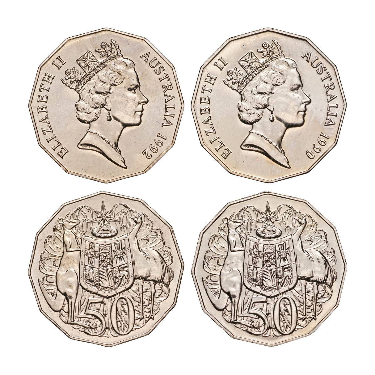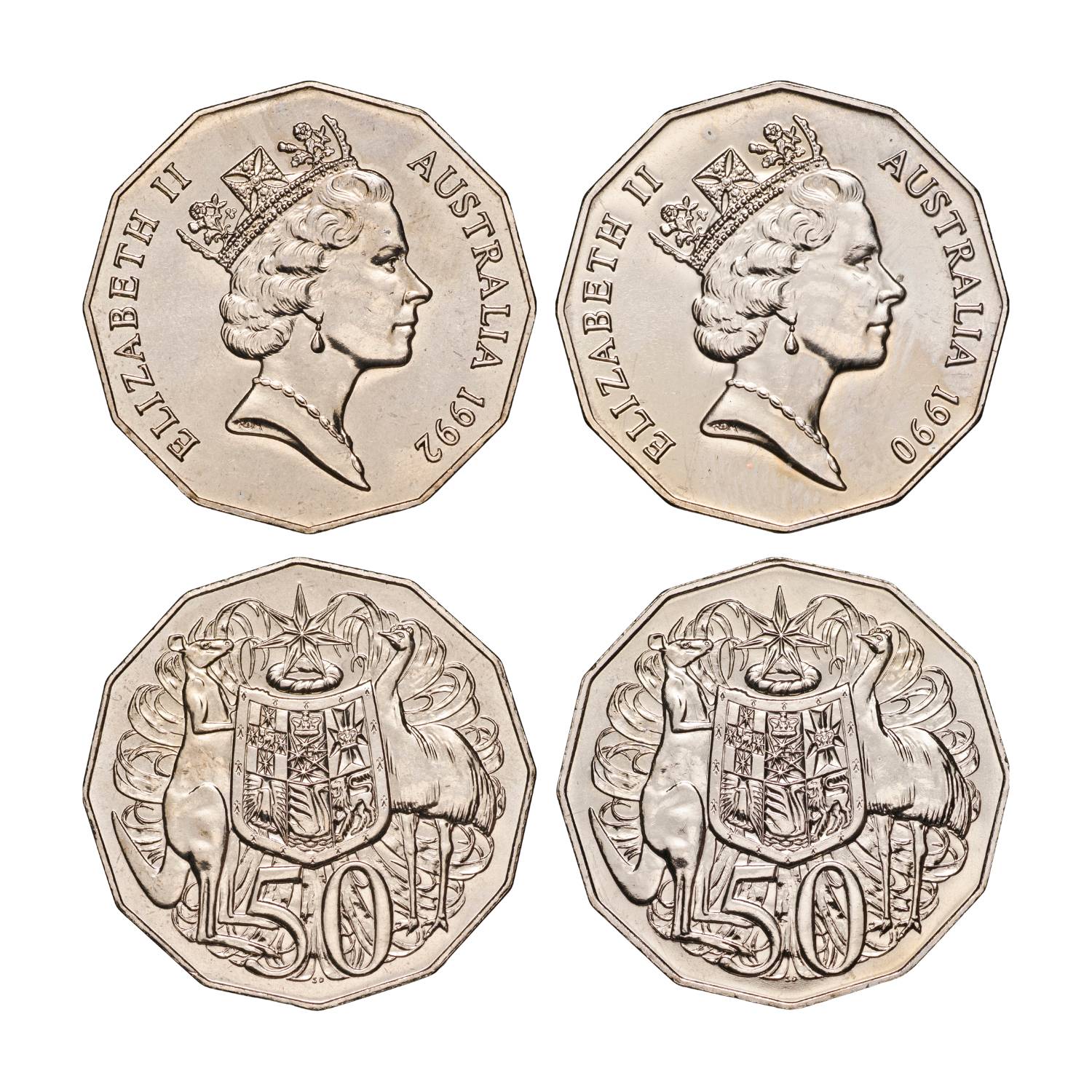 Australia 1990 & 1992 50c Brilliant Uncirculated Coin Pair