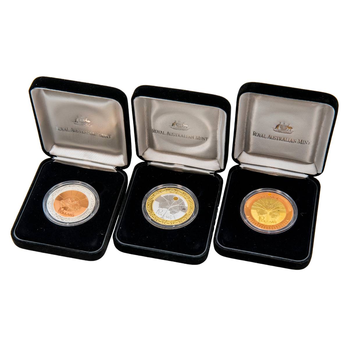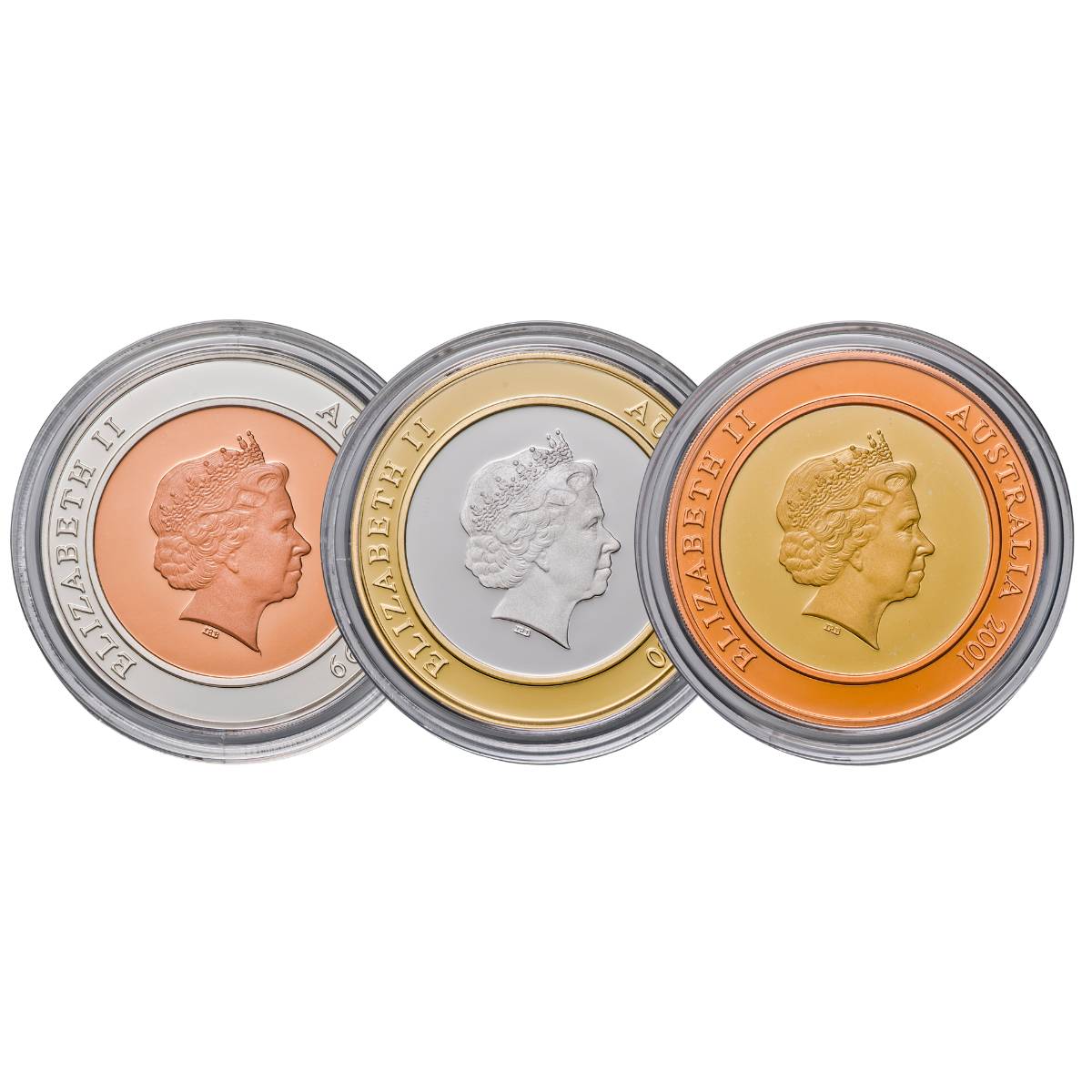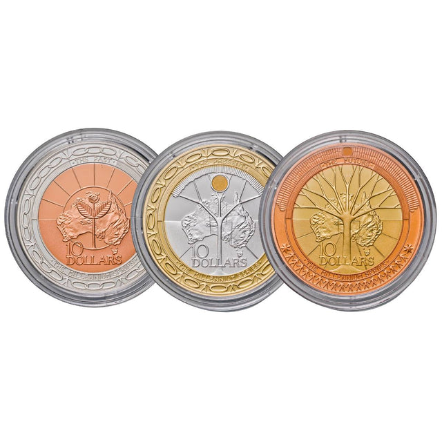 Australia 1999-2001 $10 Past, Present & Future Bimetal 3-Coin Proof Set