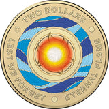 Australia 2018 $2 Lest We Forget C Mintmark Colour Aluminium-Bronze Uncirculated Coin