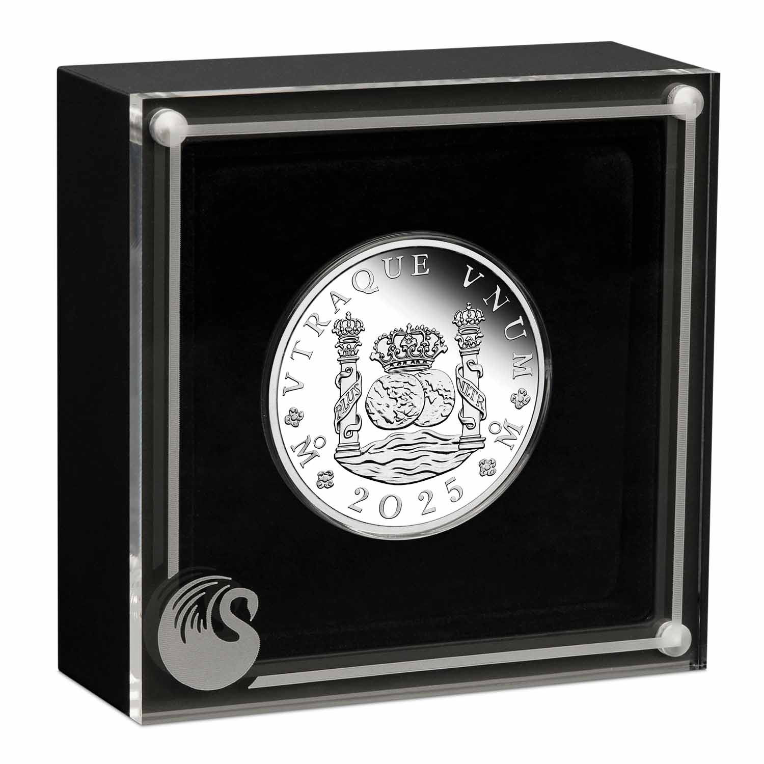 A spectacular way to mark the 225th anniversary of Australia’s first currency system, this sparkling 99.99% silver Proof is a breathtaking recreation of the famous Spanish Silver ‘Pillar’ Dollar. Famous as the origin for the $ sign, inspired by the S-shaped configuration of the banners around the Pillars of Hercules, the Spanish Silver Dollar was one of the world’s most trusted trade coins. Also known as a ‘Piece of 8’, the coin naturally made its way to Britain’s new colony, and was listed in Governor King’s Proclamation of 1800 at a value of five shillings.