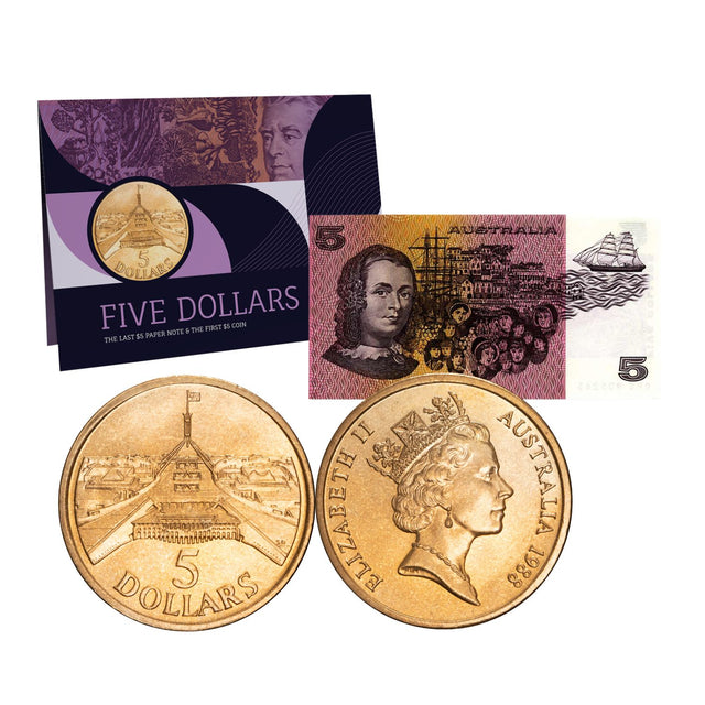 Australia $5 Last Note & First Coin Uncirculated Pack