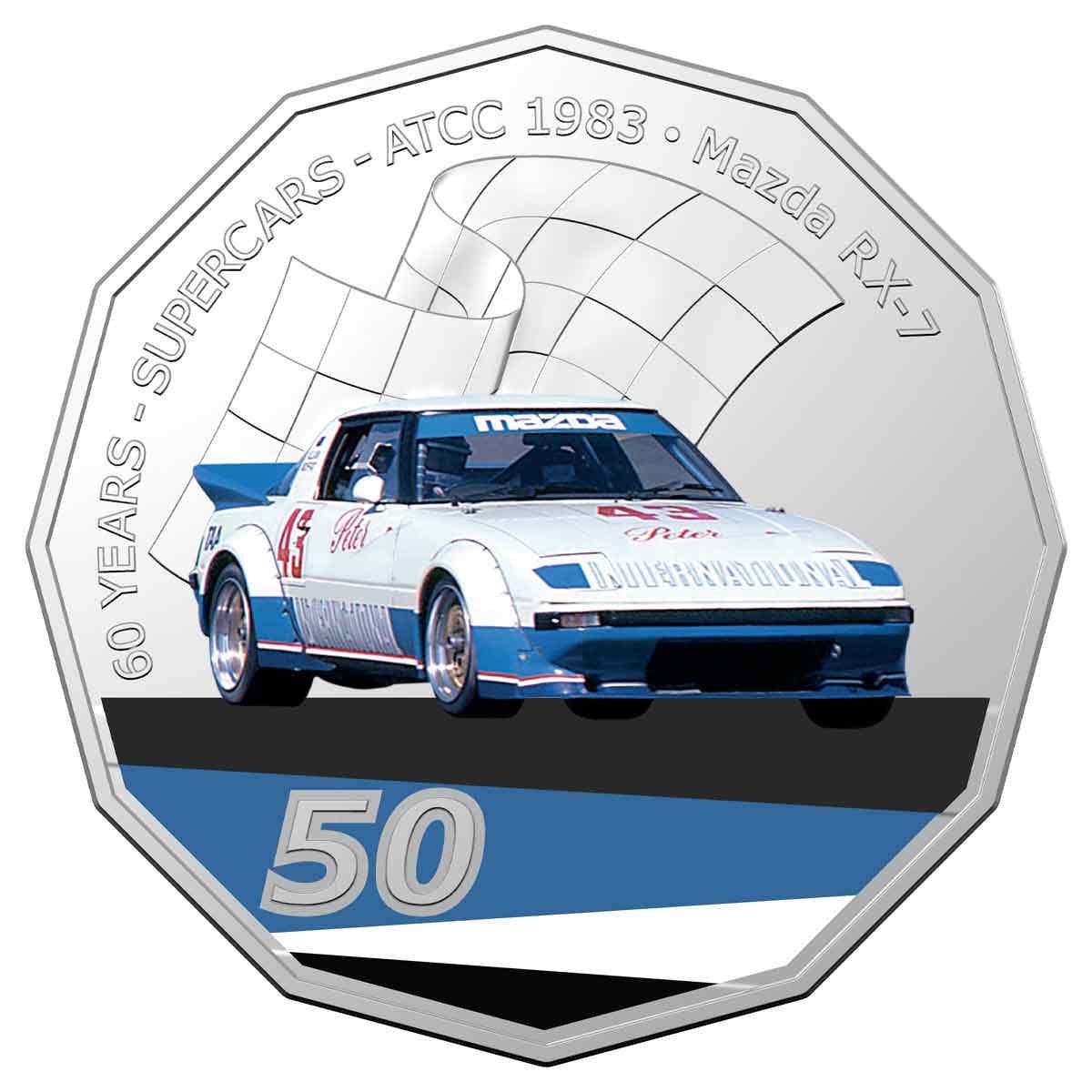 60 Years of Australian Supercars 2020 50c - 1983 Mazda RX-7 Uncirculated Coin