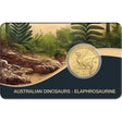 Part of a four coin series on Australian dinosaurs, this coin features an illustration of Elaphrosaurine.
