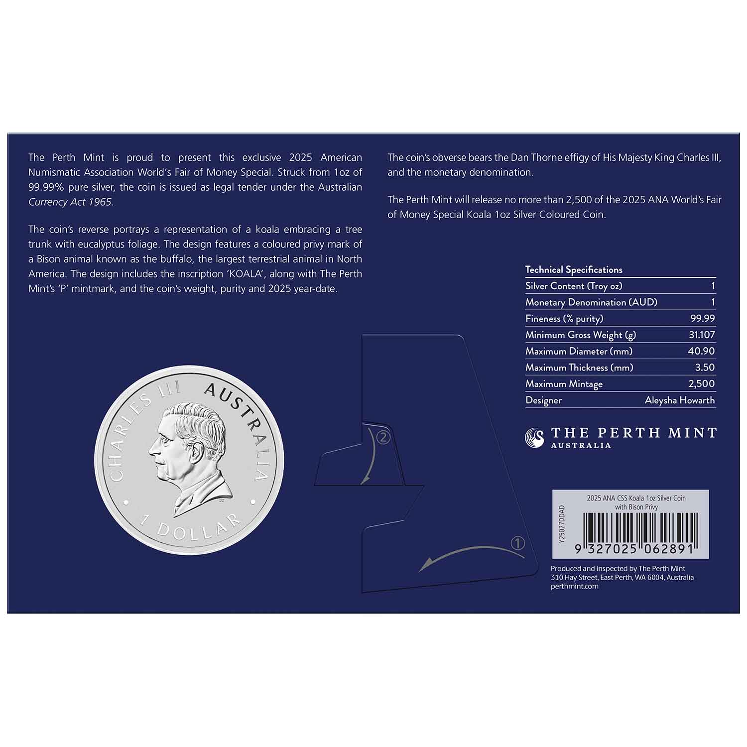 Australia ANA World’s Fair of Money Koala 2025 $1 Privymark 1oz Silver Uncirculated Coin